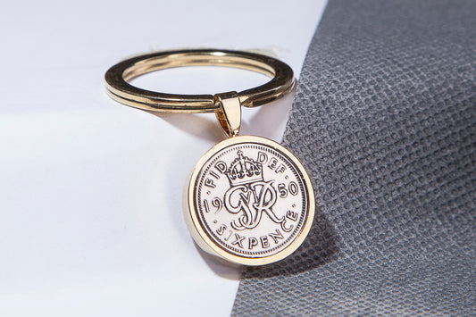 1951 74th Birthday Luck Sixpence Two Hearts Keyring