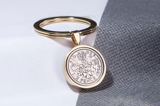1955 70th Birthday Luck Sixpence Two Hearts Keyring
