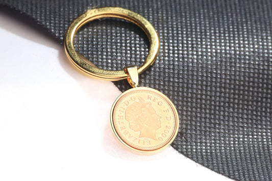 2000 Decimal One Pence Keyring - 25th Birthday Gift