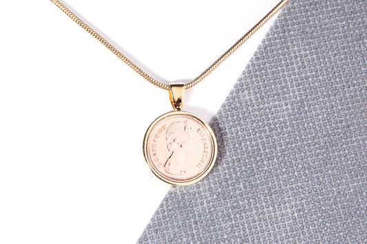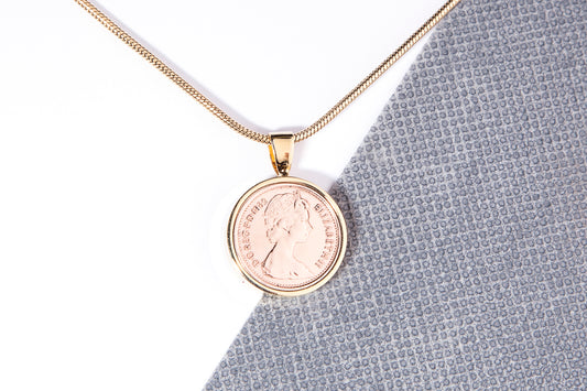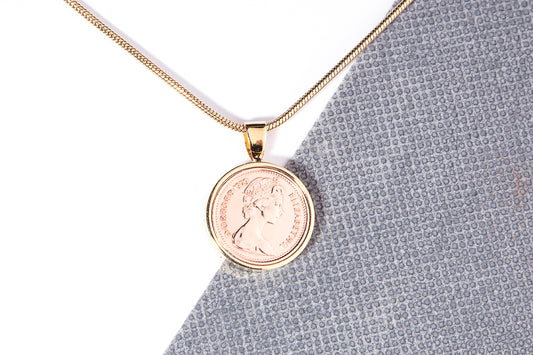1982 Decimal Half Penny Pendant - 43rd Birthday Gift