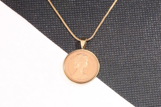 1975 Decimal One Pence Pendant - 50th Birthday Gift