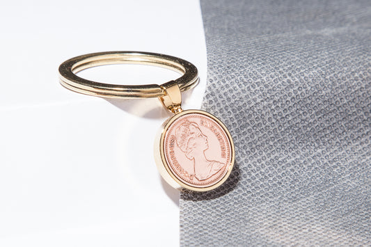 1982 Decimal Half Penny Keyring - 43rd Birthday Gift